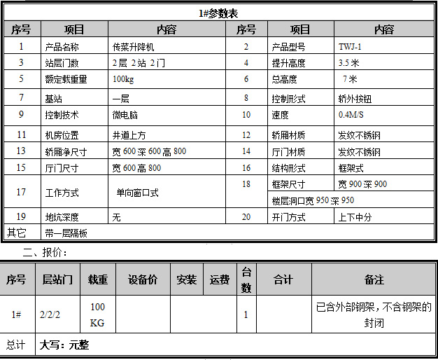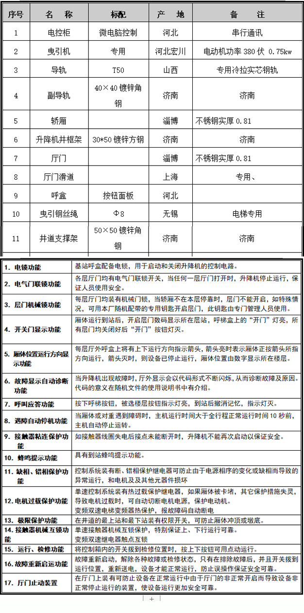 六、附升降機(jī)主要配置表及標(biāo)準(zhǔn)功能表